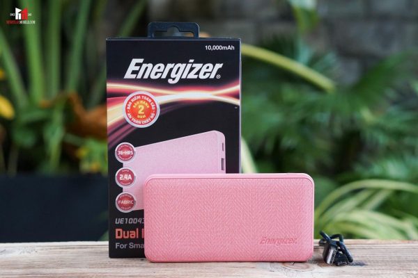 Cùng với vật liệu khá lạ thì Energizer cũng mang đến một số màu sắc khá bắt mắt gồm hồng, xám và xanh dương để người dùng thoải thích lựa chọn với sở thích của mình. Một điểm nữa mình đánh giá cao là phần khung bằng nhựa cũng trùng màu với lớp phủ mà Energizer gọi là vải Fabric cho Energizer UE10043 có một thiết kế tổng thể khá bắt mắt, tạo được điểm nhấn cũng như sự khá biệt so với phần lớn pin sạc dự phòng đang có mặt trên thị trường.