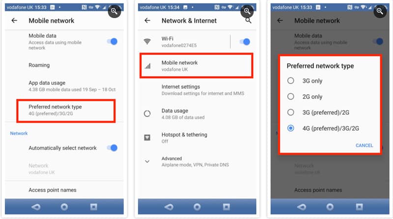 - Nhấn vào Preferred network type (Loại mạng ưa thích)