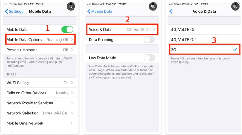 Hầu hết các thiết bị di động cao cấp hiện nay đều hỗ trợ dữ liệu 4G và 5G. Nhưng tốc độ nhanh hơn đồng nghĩa với việc sử dụng dung lượng dữ liệu di động của bạn nhanh và nhiều hơn. Một cách khác để giảm mức sử dụng dữ liệu di động là hạ cấp xuống 3G.