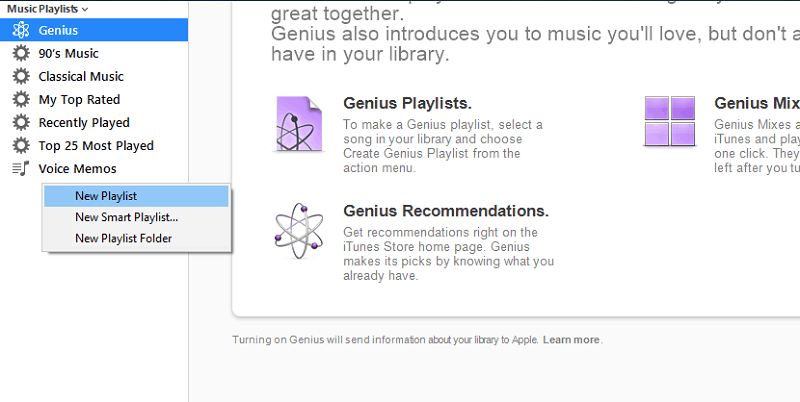 Bước 5: Để quản lý nhạc bạn vào Menu > New Playlist để tạo album hoặc playlist > kéo thả các bài hát tương ứng vào iTunes.