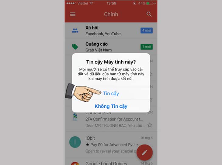 Chọn “Tin cậy” để cho phép kết nối với máy tính. Vào giao diện chính vậy là bạn đã kết nối thành công.