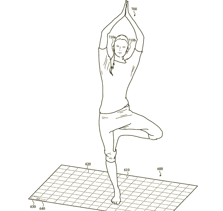 Bằng sáng chế cũng nêu chi tiết về một tấm thảm tập luyện được trang bị các cảm biến và kết nối với AirPods. Mục đích của cảm biến là phát hiện vị trí của người. Cảm biến/thiết bị cảm biến có thể được đặt trong quần áo. Thảm sử dụng cảm biến và cảnh báo người dùng để điều chỉnh tư thế của họ. Hơn nữa, nó cung cấp phản hồi bằng cách tắt âm thanh ở một bên, tăng âm lượng ở một bên hoặc tạm dừng phát lại âm thanh.