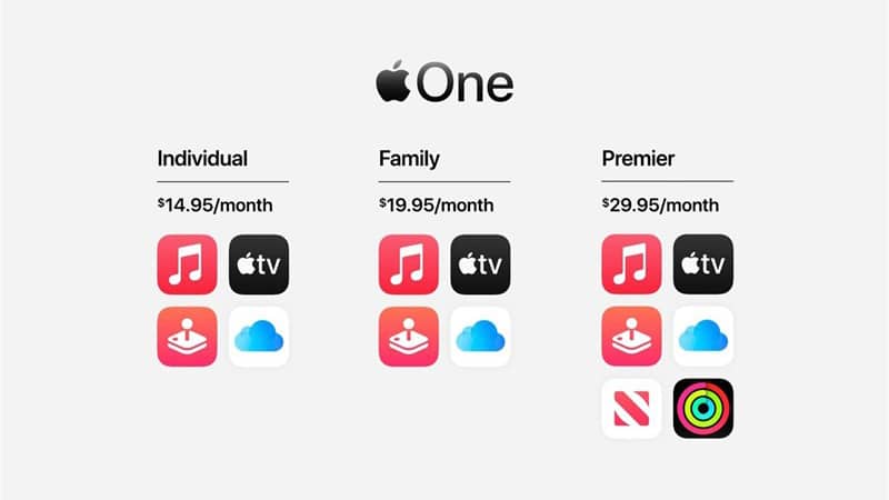 Hai gói đầu tiên có Apple Music, Apple TV+, Apple Arcade và bộ nhớ iCloud tuỳ dung lượng, trong khi gói thứ 3 có thêm Apple News+ và Apple Fitness vừa mới được công bố.