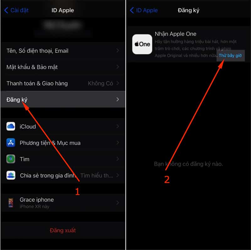Bước 2: Bạn nhấn chọn vào mục "Đăng ký", sau đó giao diện sẽ hiển thị ra logo Apple One và nút lệnh "Thử bây giờ", bạn chọn vào nút lệnh đó.