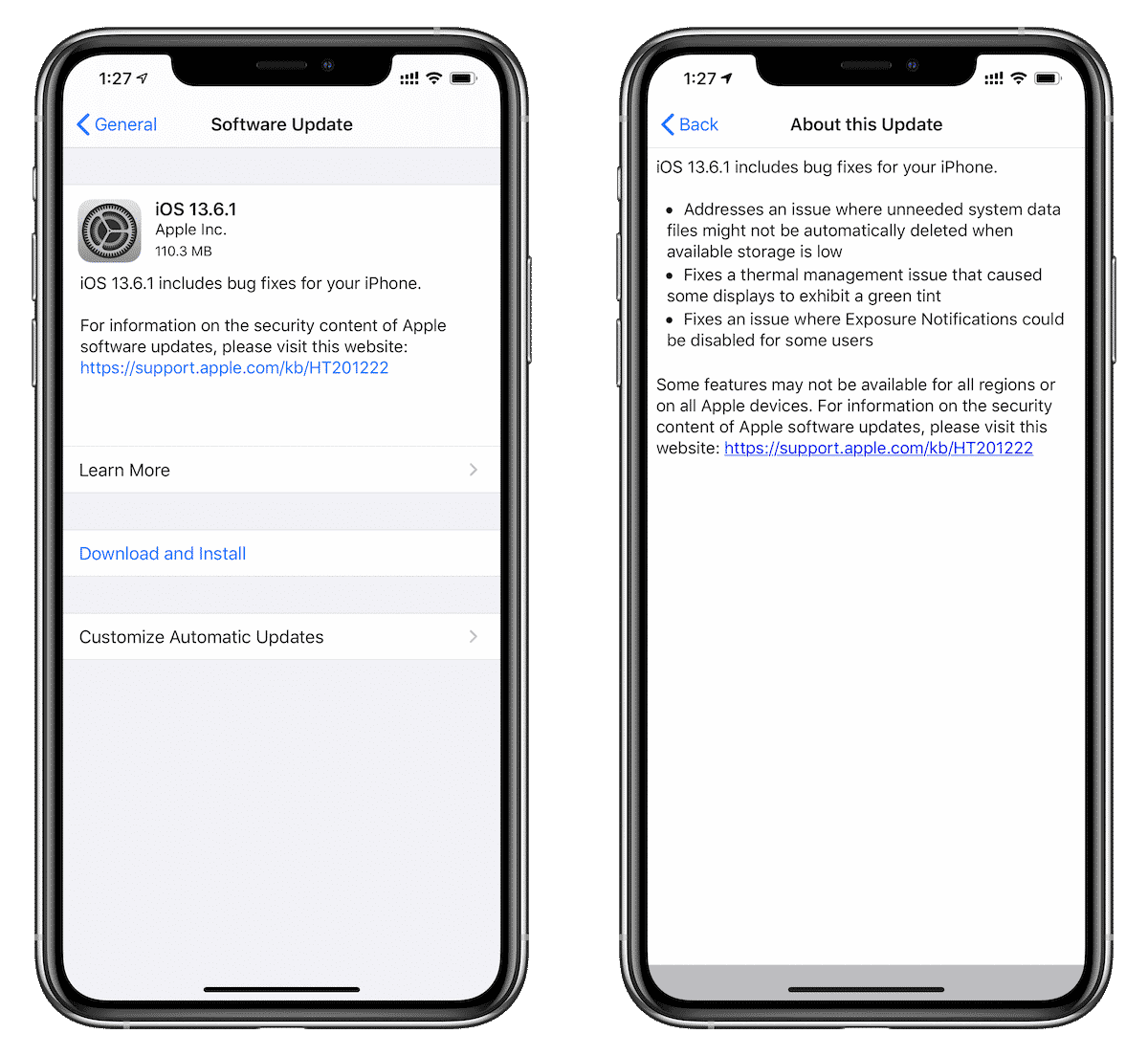 Bản cập nhật iOS 13.6.1 mới khắc phục sự cố màn hình xanh này đồng thời cũng sửa luôn lỗi đầy bộ nhớ, cũng như lỗi không thể kích hoạt tính năng phát hiện phơi nhiễm COVID-19.