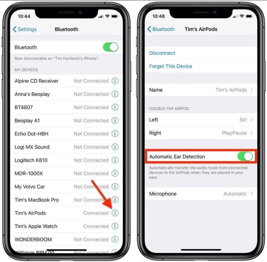 Đầu tiên bạn hãy chắc chắn rằng Automatic Ear Detection được bật. Chế độ này sẽ giúp tai nghe của bạn sử dụng nguồn năng lượng thấp, về cơ bản là tắt khi người dùng không sử dụng chúng.