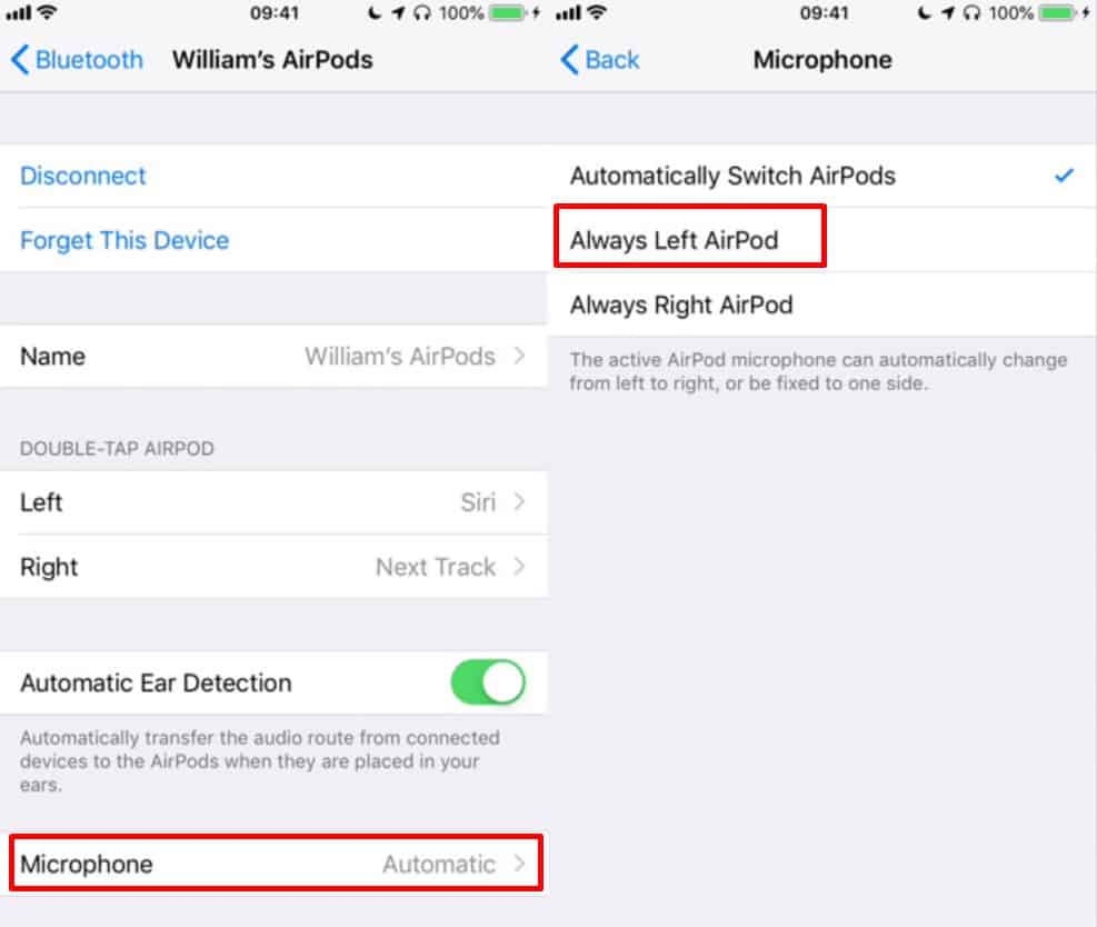 Hoặc bạn có thể thử cách sau. Bạn hãy vào Cài đặt >> Chọn Bluetooth >> Nhấp vào biểu tượng “i” >> Chọn Micro bên trái hoặc phải theo mong muốn.