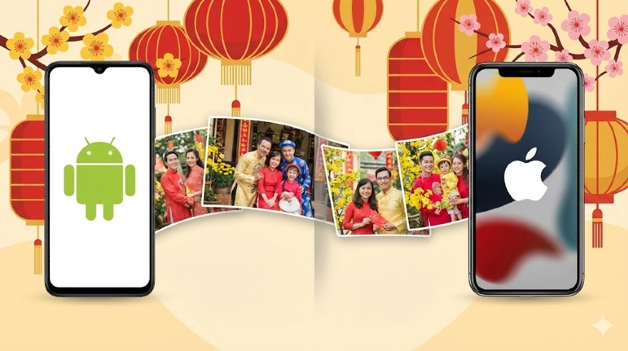 Dịp Tết sum họp, cả gia đình quây quần chụp ảnh kỷ niệm nhưng lại dùng đủ loại điện thoại, từ Android đến iPhone. Chuyện chia sẻ ảnh giữa hai hệ sinh thái này luôn khiến nhiều người đau đầu. AirDrop thì không tương thích giữa Android và iPhone, vậy có cách nào khác không?