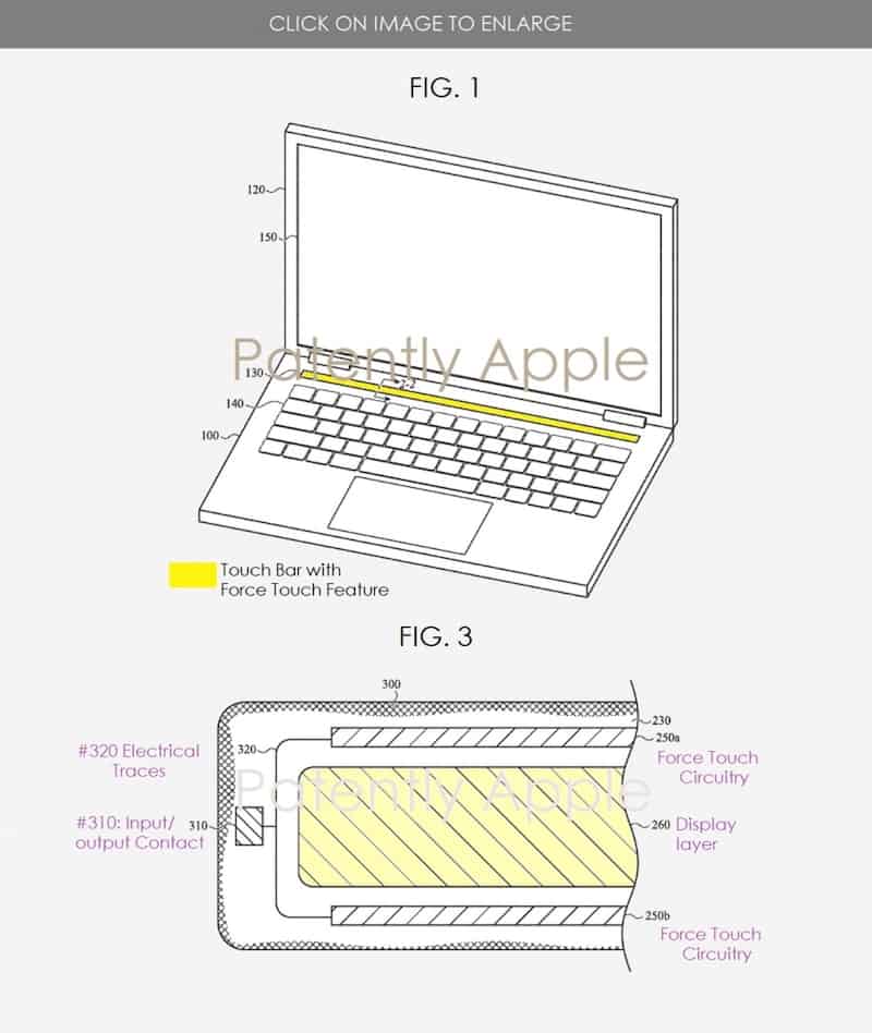 Bằng sáng chế nêu chi tiết cách Force Touch có thể đưa nó vào MacBook Pro Touch Bar. Bằng cách phân loại các mức lực khác nhau sẽ cho kích hoạt các chức năng khác nhau. Apple sử dụng một lớp phụ thứ cấp để phát hiện các mức lực khác nhau.