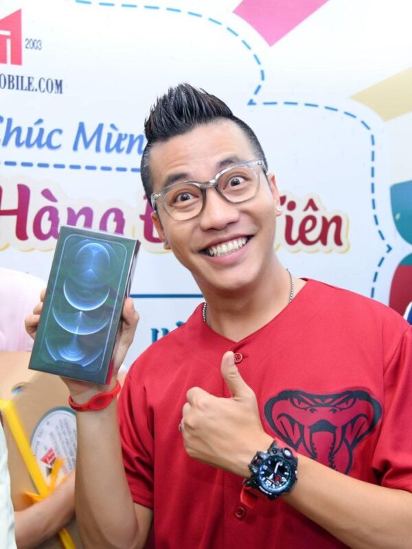 Nhớ hôm mở bán, anh Hoàng Rapper dù đang rất vội “về nhà chăm con” nhưng vẫn phải xếp hàng, nhìn anh hối hả thấy thương luôn ???? Thật may cuối cùng iPhone 12 Promax XANH NAVY đã về với anh ngay tối đó. Hôm nay a Hoàng quay lại ủng hộ Minh Tuấn, đi cùng còn có bà xã và 2 con nữa, ko biết chị nhà có hài lòng với em iPhone mới ko anh hả????????
