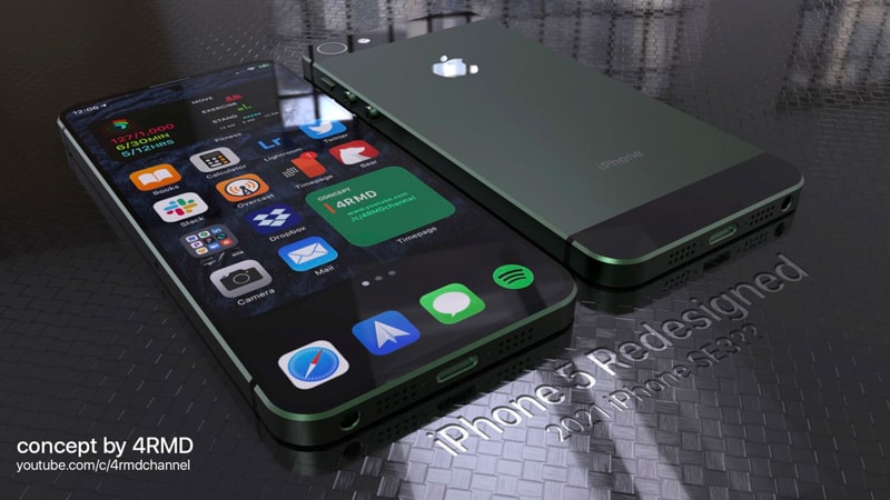 Chip A14 được vay mượn từ dòng iPhone 12. 4RMD cũng cân nhắc đặt tên cho thiết kế của mình là iPhone 5R, thiết kế có 7 màu sắc khác nhau: xanh navy, vàng, vàng hồng, đỏ, đen, bạc và trắng.