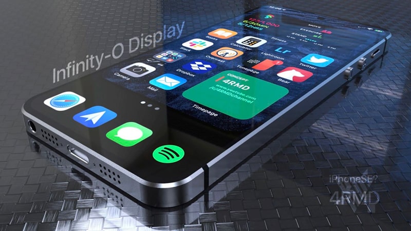 iPhone SE mới này có màn hình OLED 5 inch Infinity O Super Retina XDR, camera đục lỗ và cảm biến Touch ID được tích hợp trong màn hình.