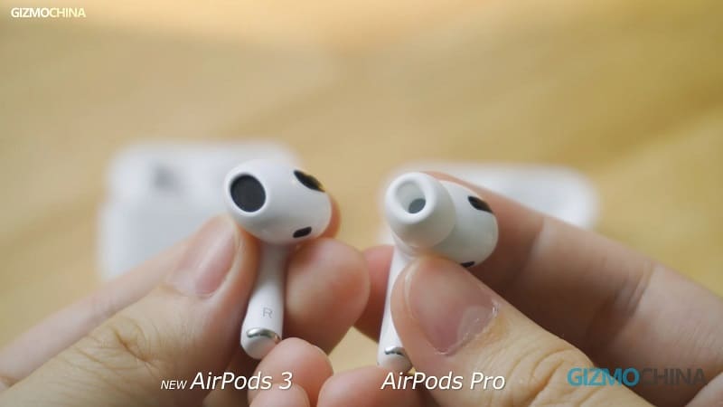 Bây giờ chúng ta hãy xem xét phần thân của tai nghe. Nhìn vào phần notch trên thân tai nghe, có vẻ như chúng vẫn hoạt động dựa trên cảm ứng lực, có một khoang lớn và phần cuống tai nghe ngắn hơn, tạo cảm giác chắc chắn hơn khi đeo. Và nhờ sự thay đổi trọng tâm, thiết kế Airpods 3 sẽ hạn chế thiết bị rơi khỏi tai bạn. Đây quả là một cải tiến thông minh phải không nào.