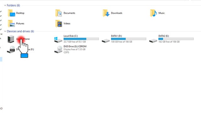 Bước 2: Trên máy tính bạn mở My Computer sẽ có thư mục Apple iPhone như hình.