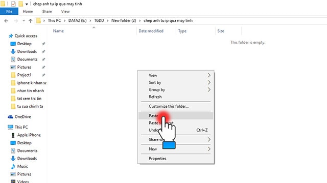 Bước 7: Chọn thư mục lưu ảnh trên máy tính > kích chuột phải và chọn Paste là xong.
