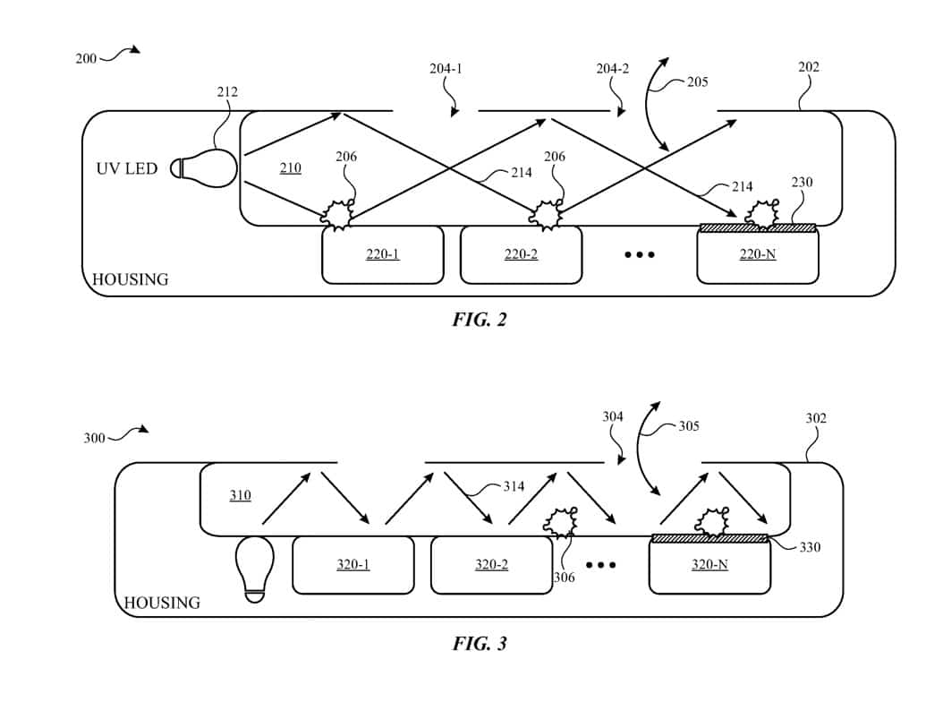 Khi sử dụng một thời gian, các bộ phận và cảm biến bên trong thiết bị có thể bị bẩn, ảnh hưởng đến hoạt động của chúng. Để giữ cho chúng sạch sẽ đồng thời khử trùng chúng, Apple đã đề xuất một ý tưởng bằng cách sử dụng nhiệt và ánh sáng. Một bằng sáng chế mới của Apple đã được nộp cho USPTO giải thích cách một số loại cảm biến có thể sử dụng để làm sạch hệ thống.