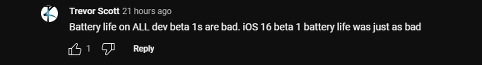 Theo dòng bình luận của mọi người, chủ tài khoản Trevor Scott giải đáp: "Tuổi thọ pin trên tất cả các phiên bản Beta 1 của nhà phát triển đều kém. Thời lượng pin của iOS 16 bBeta 1 cũng tệ như vậy." Vì thế, người dùng có thể mong chờ sự cố hao pin trên được khắc phục trên iOS 17 Beta tiếp theo.