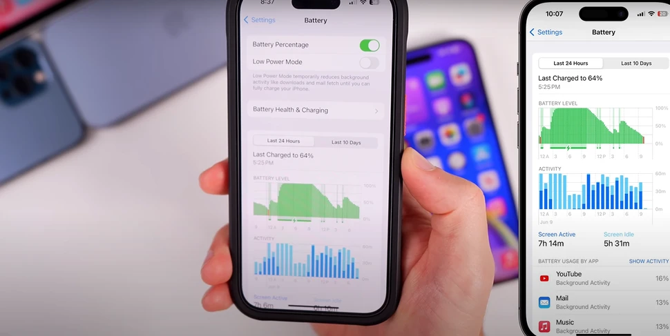 Nhưng theo cập nhật mới nhất của tài khoản Bradon Butch, sau 1 tuần trải nghiệm iOS 17 Beta 1 trên iPhone 14 Pro Max, tình hình có vẻ tệ hơn. Cụ thể khi anh đi ngủ thì các ứng dụng vẫn hoạt động nền mạnh mẽ, đặc biệt là ứng dụng Mail (thư), kể cả khi đã tắt nó. Chủ tài khoản cũng cho thấy biểu đồ thời lượng pin tăng cao trong mục pin của anh, kể từ khi tải xuống iOS 17 Beta 1.