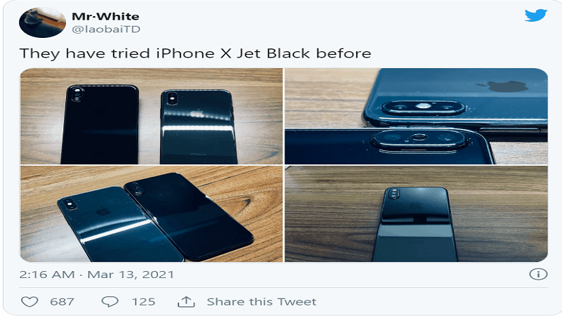 Tuy hình ảnh rò rỉ được cho là không có logo Apple hay các nhãn hiệu chứng nhận khác, đồng thời cũng không có thiết kế camera hoàn thiện, nhưng nó lại mang thiết kế giống hệt như iPhone X. Không rõ liệu Apple có đang thử nghiệm và ứng dụng màu “Jet Black” trong tương lai hay không, nhưng Apple đã và đang ứng dụng màu “Black” tiêu chuẩn cho các mẫu iPhone 11 và iPhone 12.