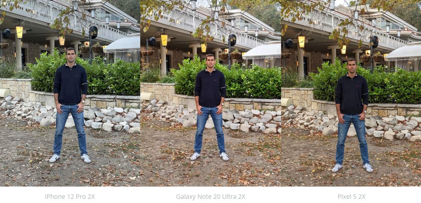 Cuối cùng, Pixel 5 thiếu camera thứ ba, một ống kính zoom tele, trong khi iPhone 12 Pro và Galaxy Note 20 Ultra thì có. IPhone có ống kính zoom 2X mà nó cũng sử dụng để chụp chân dung, nhưng nó không thể zoom xa, trong khi Galaxy có ống kính zoom 5X nhưng không thể sử dụng cho ảnh chân dung.