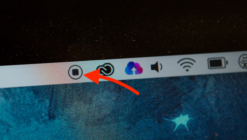 - Bấm vào biểu tượng hoặc nhấn tổ hợp phím Command-Control-Esc để dừng quay. Video sẽ tự động được lưu lại.