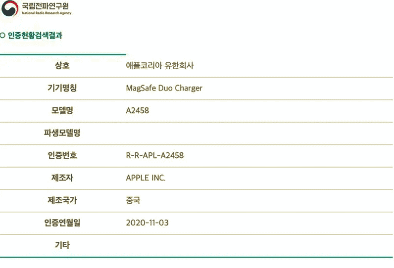Trên một lưu ý liên quan, bộ sạc MagSafe Duo đã xuất hiện trên một tài liệu quản lý của Hàn Quốc, nó trông rất khác so với tấm sạc không dây AirPower cuối cùng đã bị loại bỏ . Apple đã công bố MagSafe Duo Charger trong sự kiện ra mắt iPhone 12. Nó có khả năng sạc đồng thời cả iPhone 12 và Apple Watch. Apple dự kiến sẽ công bố chiếc máy Mac chạy bằng Silicon đầu tiên của Apple tại một sự kiện đặc biệt vào ngày 10 tháng 11, có lẽ công ty có thể tiết lộ MagSafe Duo Charger vào cùng ngày.