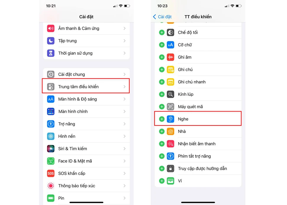 - Bước 2: Cuộn xuống “Điều khiển khác” và nhấn vào dấu “+” màu lục bên cạnh “Thính giác”.