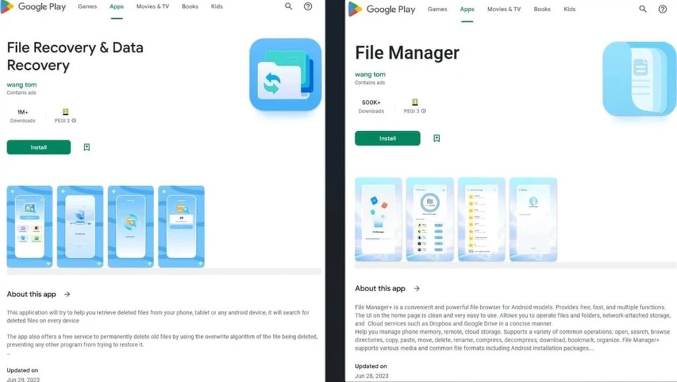 2 ứng dụng quản lý tệp trên Google Play bị phát hiện là ứng dụng gián điệp, nguy hiểm cho quyền riêng tư và bảo mật của hàng triệu người dùng Android.