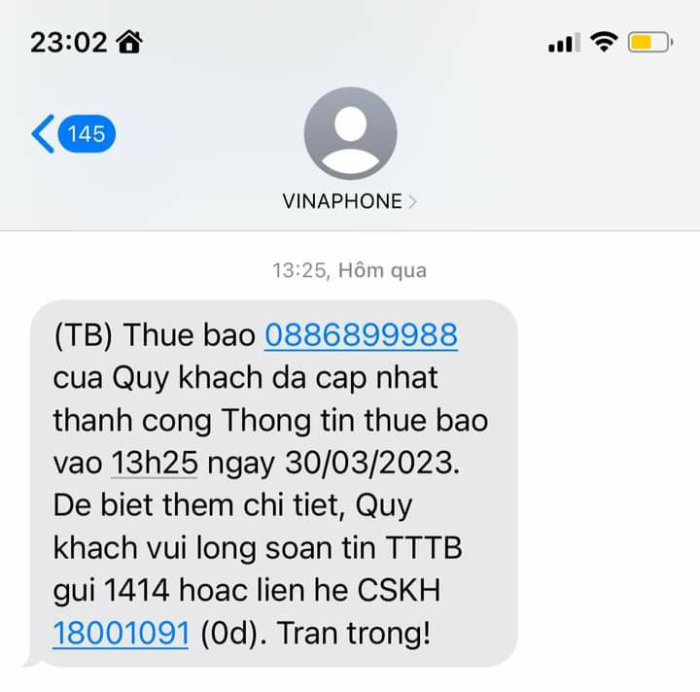Trước đó, bạn có thể nhắn tin TTTB gửi 1414 (thích hợp với tất cả nhà mạng Viễn thông) để biết chính xác thông tin thuê bao hiện hành.